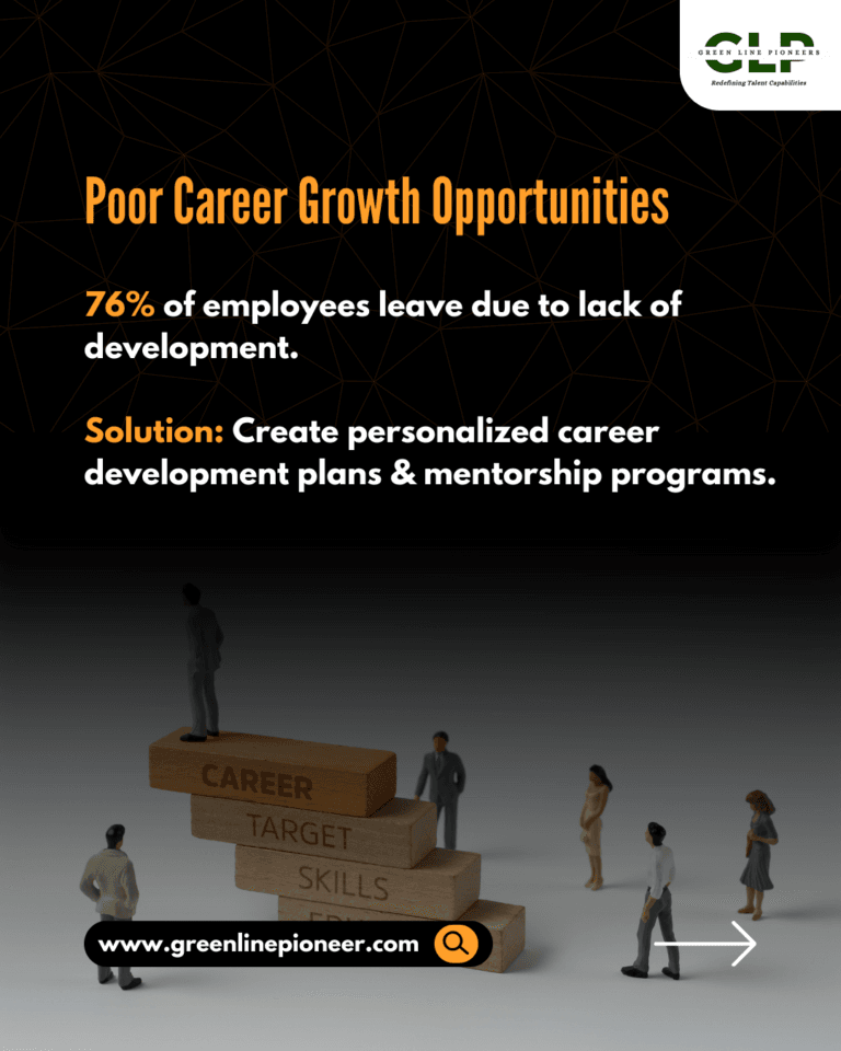 • 76% of employees leave their jobs due to a lack of growth opportunities.