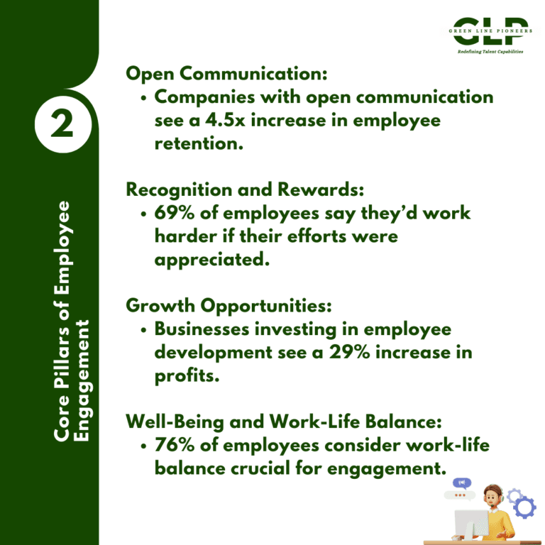 At Green Line Pioneer, we specialize in crafting customized employee engagement strategies tailored to meet the unique needs of organizations. Our expertise helps businesses foster a motivated and productive workforce. Here’s how we can support you: