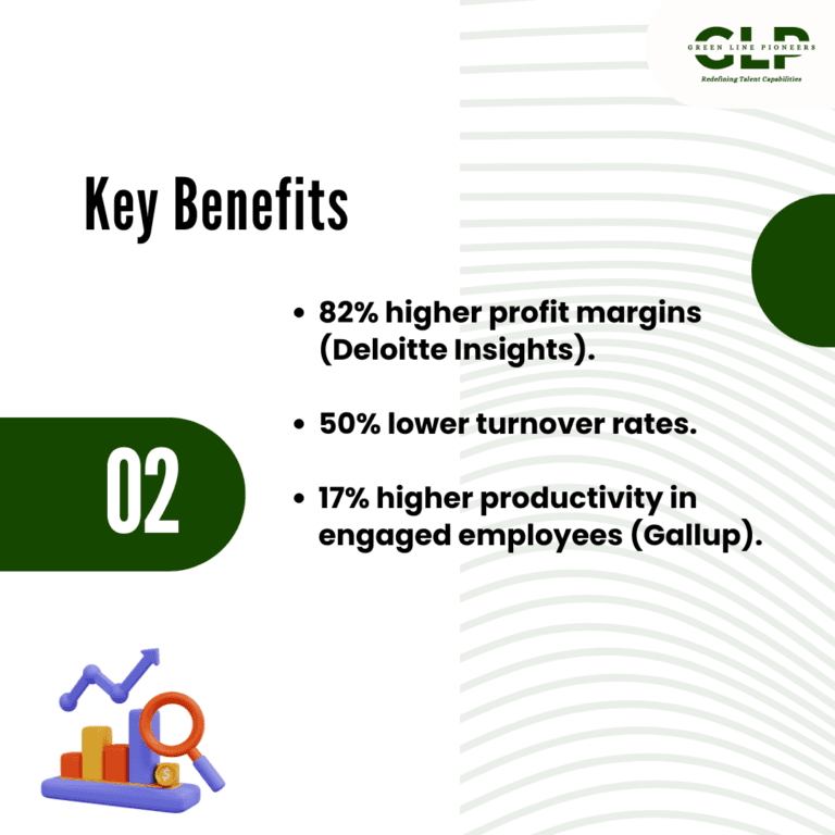 • Higher Productivity: Companies with engaged employees achieve 17% higher productivity and 21% greater profitability, according to Gallup.