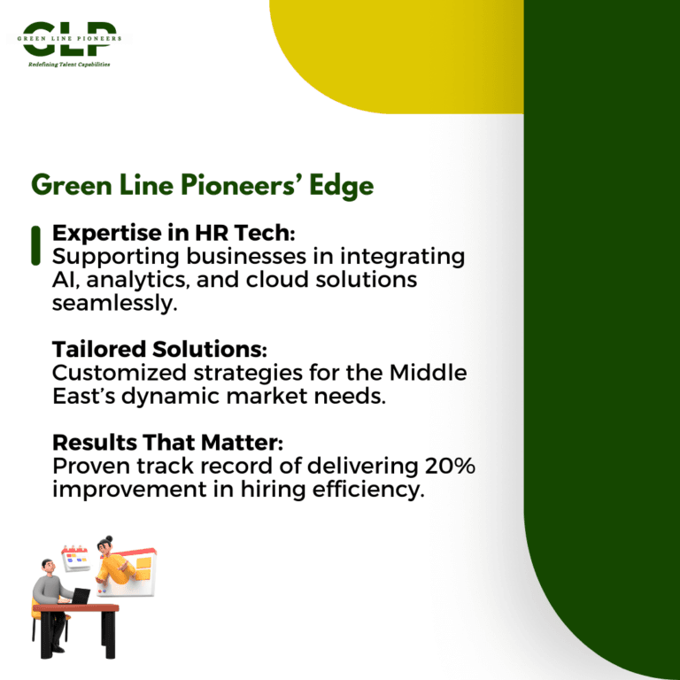 With extensive experience in the Middle East market, Green Line Pioneers understands the region’s unique challenges and opportunities. From strategy development to seamless execution, we ensure every business gets the most out of its digital HR transformation.