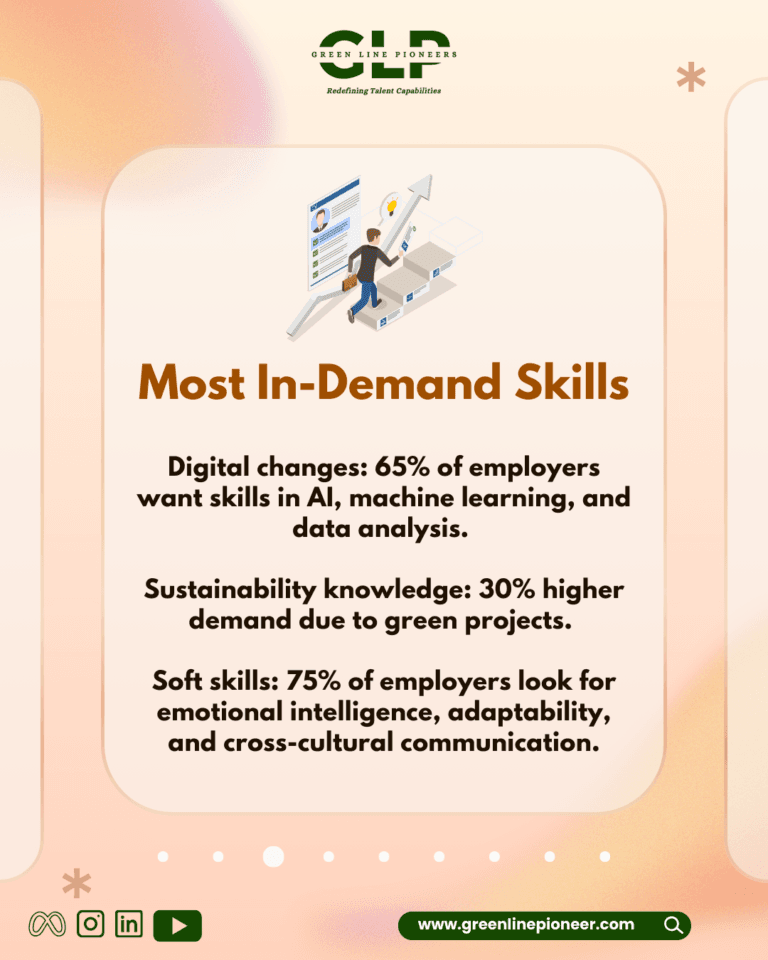 - Sustainability Knowledge: There has been a 30% increase in demand for green skills, from carbon footprint analysis to sustainable supply chain management.