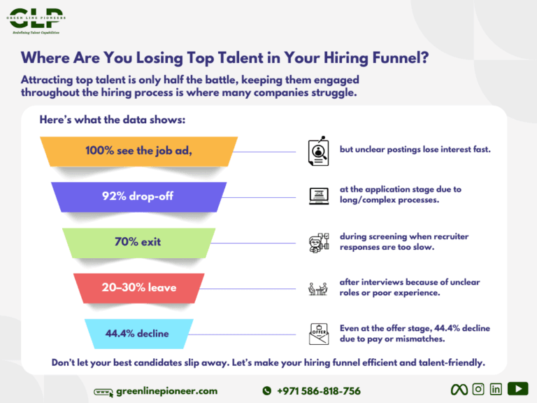 At Green Line Pioneers, we collaborate with organizations to transform their recruitment strategy. We focus on building efficient, candidate-centric processes that not only identify the right people but also ensure they remain engaged from initial contact to signed contract.